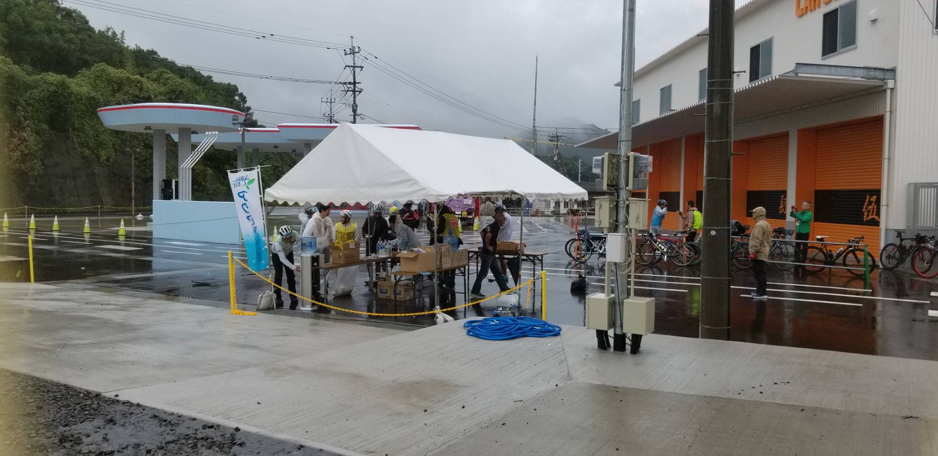 今回、有明商事 小長井町石油様のご協力も得て、A-KICHI広場との合同で『第5エイドステーション』に活用いただきました。