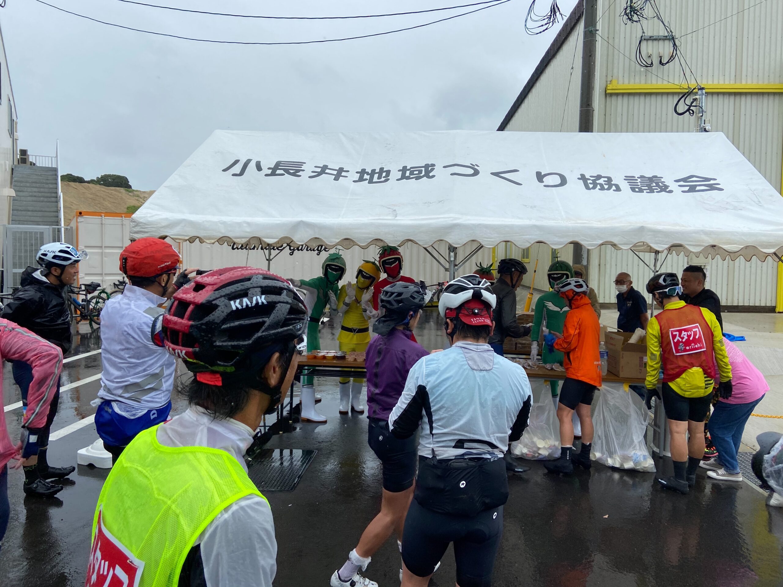 ライダーの皆さん、運営・ボランティアスタッフの皆さん、小長井役場の皆さん、フルーツレンジャーの皆さん